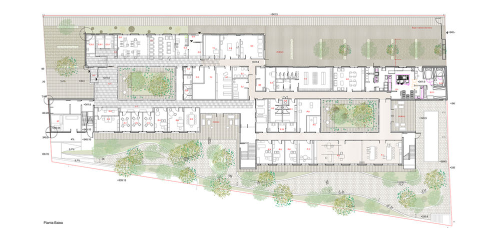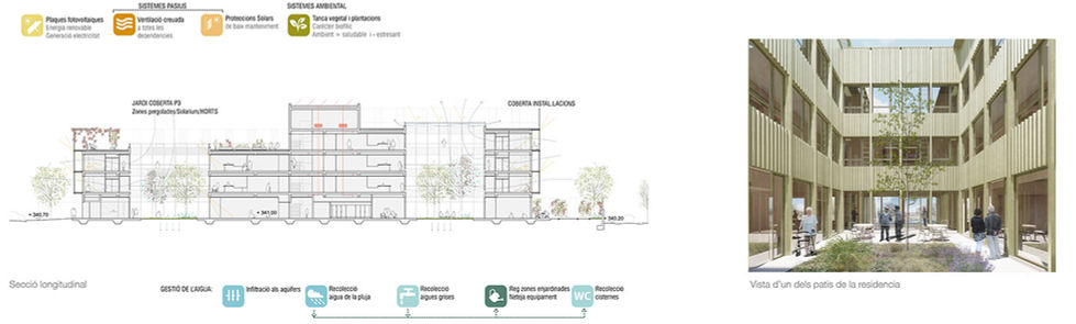 El patí és l’element responsable de la qualitat ambiental a l’interior de l’edifici. La il·luminació natural es capta a través d´aquest pati, de manera que podem controlar millor la radiació amb el filtre de la vegetació. Alhora, el pati actuarà com a element biofílic que s’incorpora en tot moment a l’experiència de l’usuari.